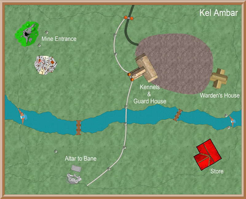 The warden of the mines, Valont, is a devout worshipper of Bane: he does not suffer fools gladly. He regularly turns his pets out to hunt: the Drakh'zgar often go hungry, but they are deterrent enough.