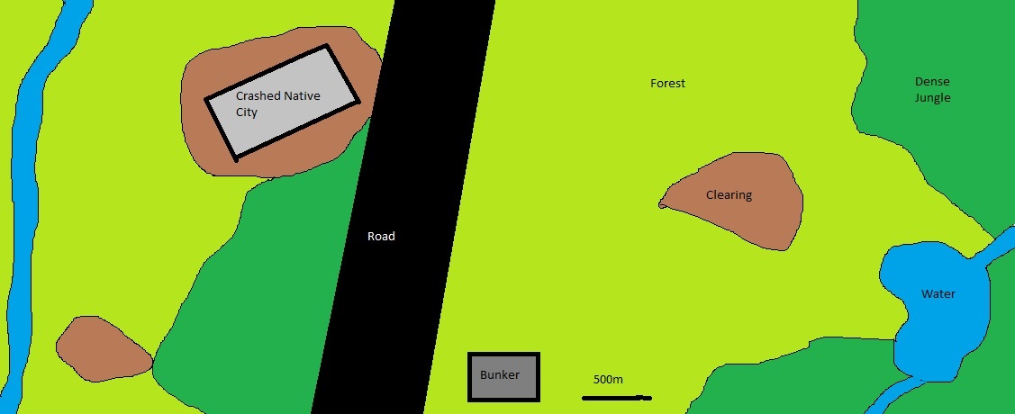 The players squad have spent the previous few weeks along with the rest of the army retreating from Ork attacks. The majority of the horde have turned on Babel which is currently burning, however, there are enough green skin barbarians to harass the Imperial forces and prevent then regrouping. The order has come for the rearguard to hold off the pursuing forces long enough for the main force to dig in. Below is a map of the area that your squad has been assigned to.